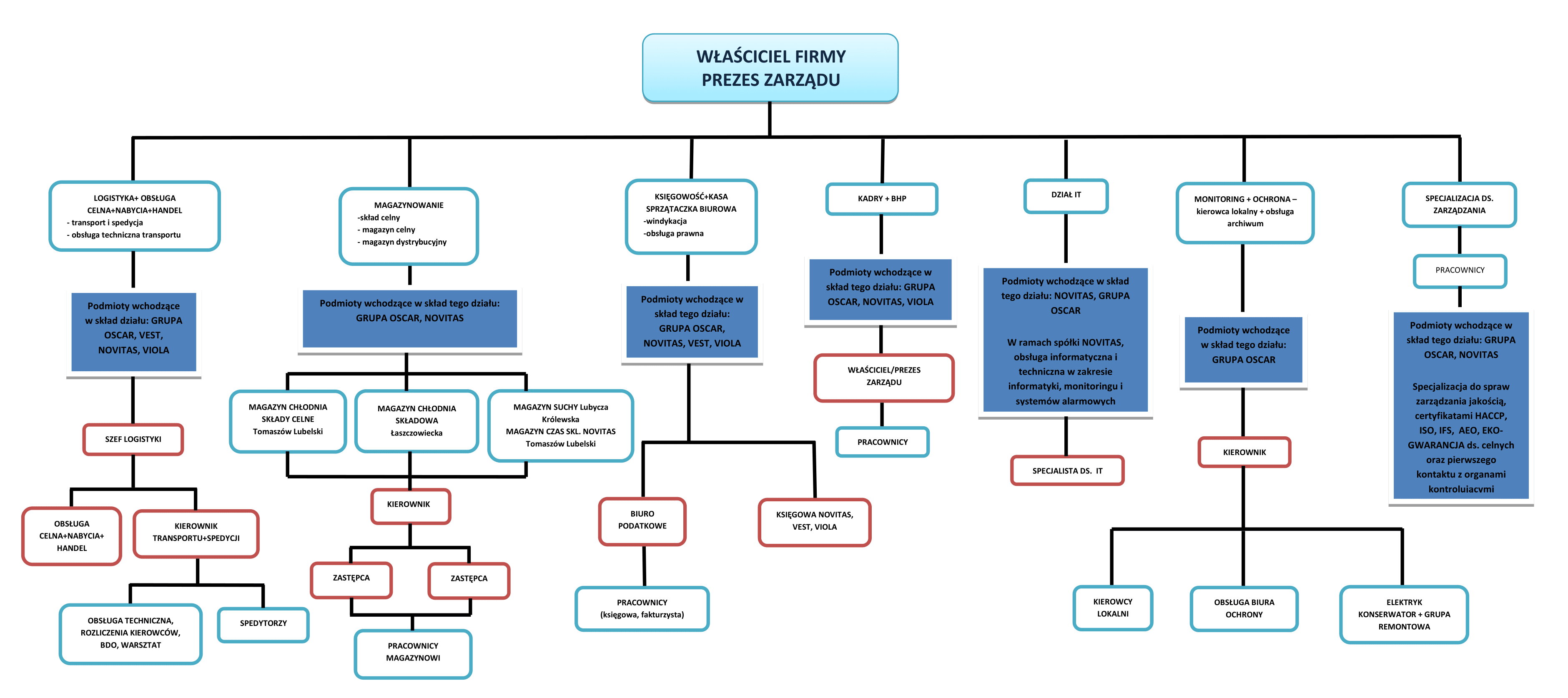 Jesteśmy dumni z osiąganych sukcesów i powiększających się możliwości naszej grupy, dlatego wszyscy nasi klienci są w pełni zadowoleni z usług oferowanych przez firmy wchodzące w skład grupy „Oscar”. Gwarantujemy terminowość naszych usług. W przypadku zaistnienia takiej potrzeby wysyłamy dwóch kierowców aby dotrzymać terminów. Zatrudniamy ponad 40 doświadczonych i w pełni kompetentnych kierowców dbających o wysoki standard świadczonych usług. Wynajem powierzchni magazynowych w magazynach zwykłych, chłodniach oraz chłodniach głębokiego mrożenia.